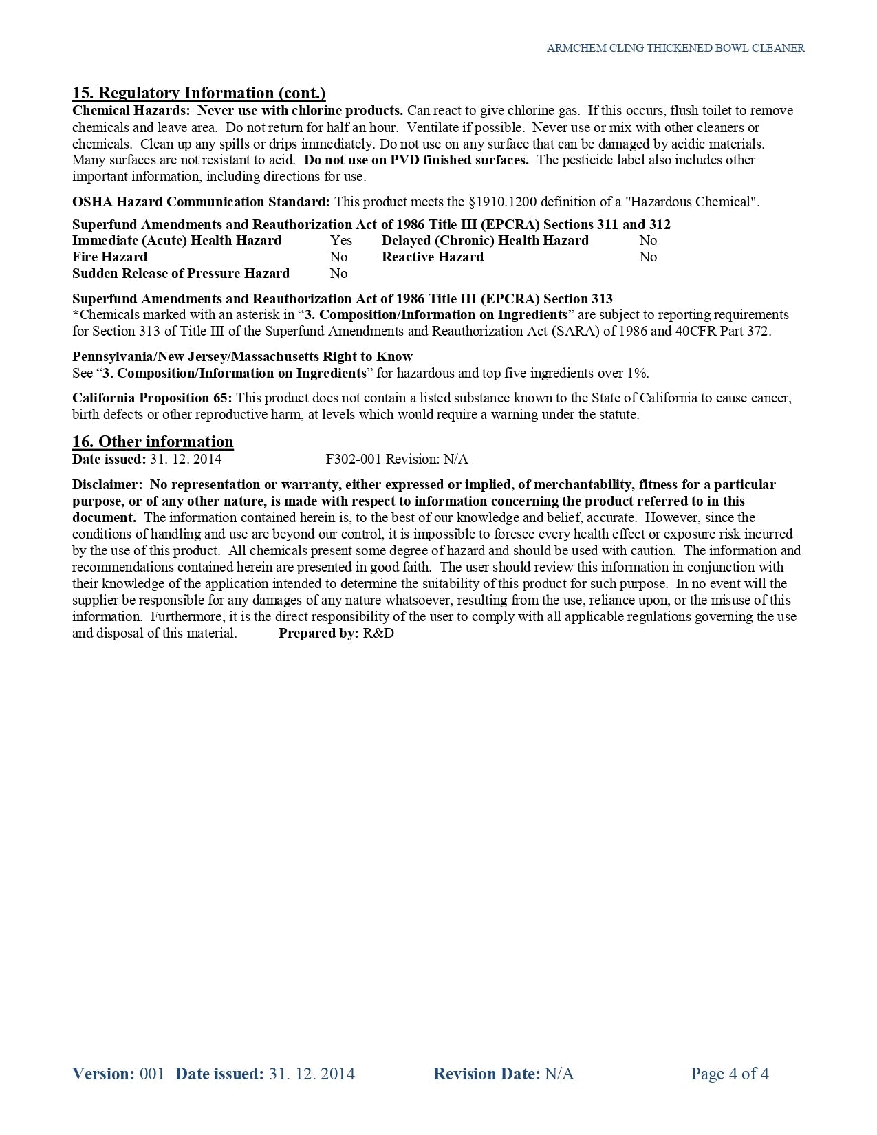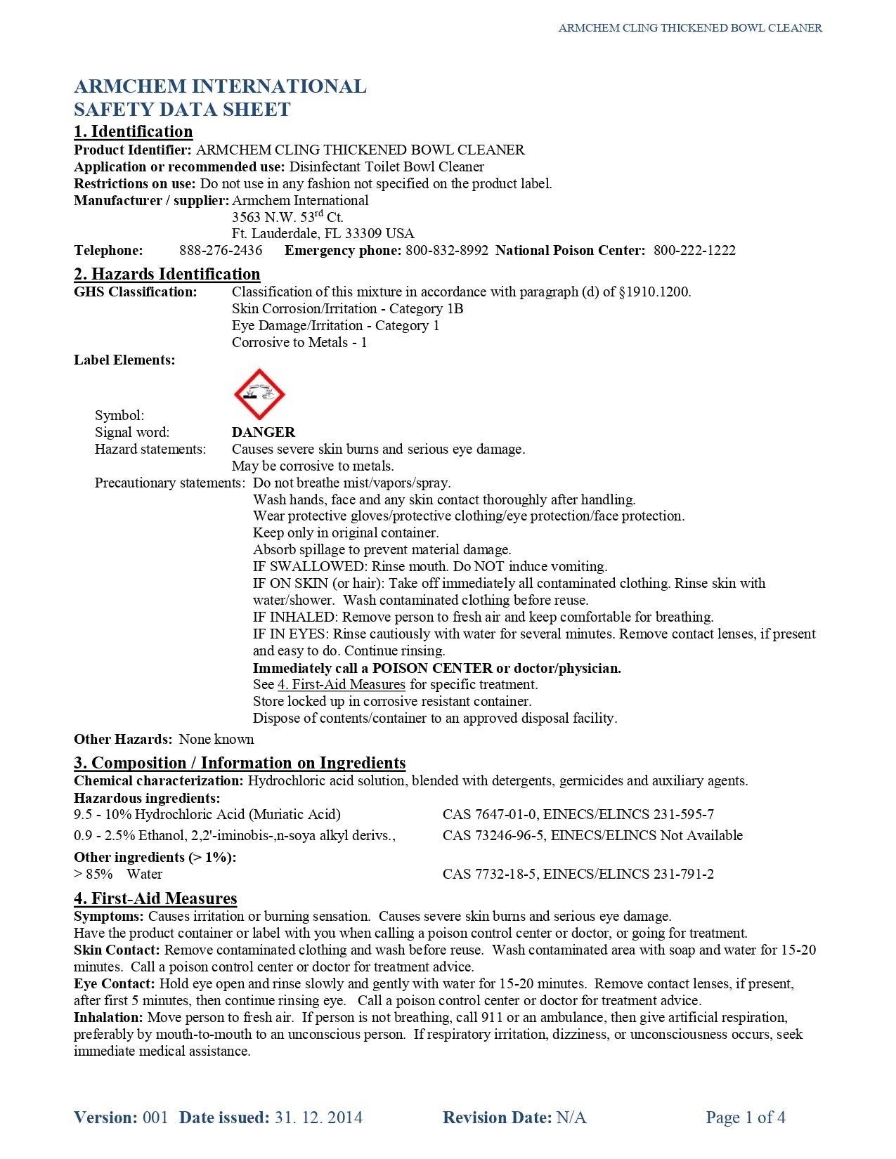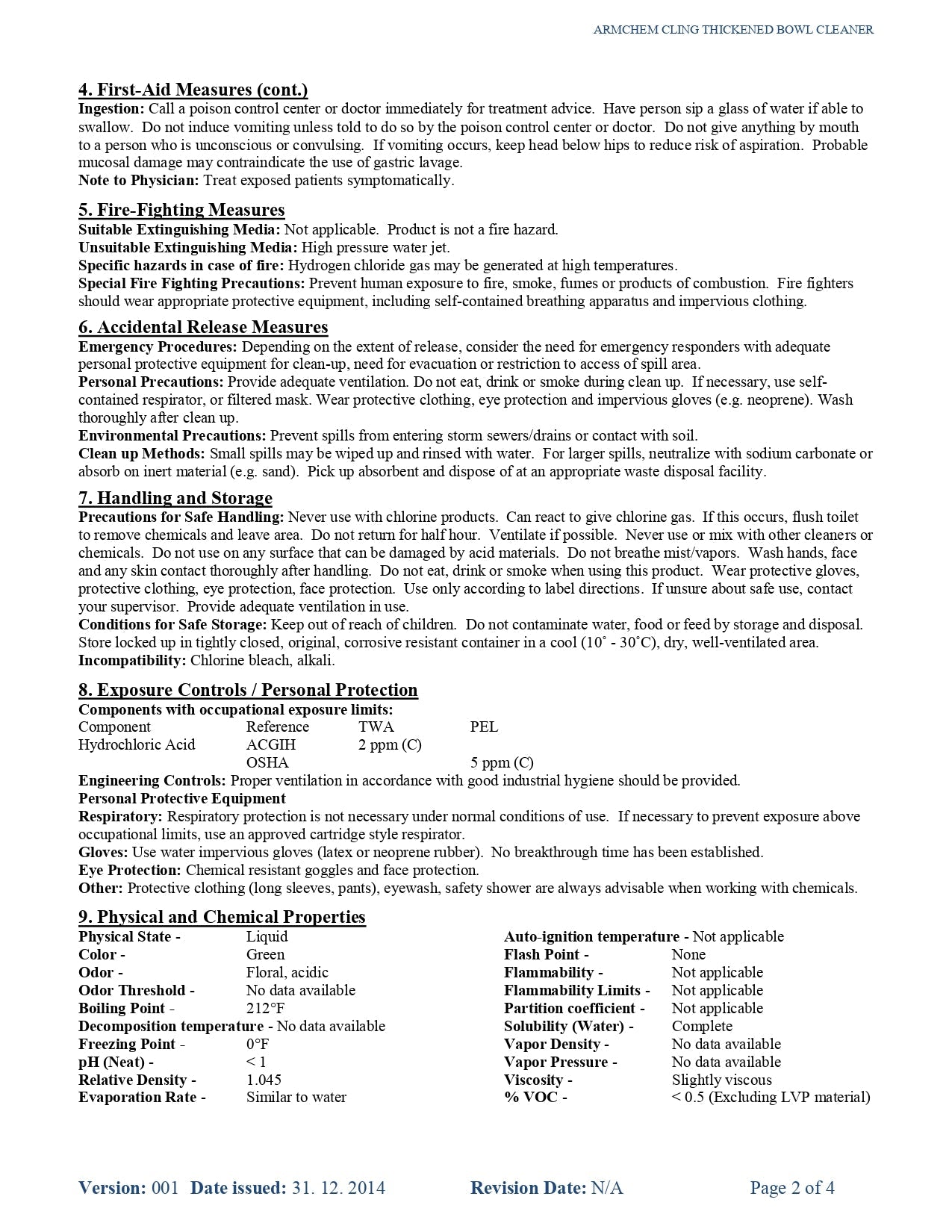 Description: Cling is a pleasantly scented disinfectant and cleaner, formulated with ultra-thick detergents, four different germicides, and a buffered low acid for tough cleaning. It quickly destroys bacteria and removes stubborn rust, scale, stains, mineral deposits, and uric salts.