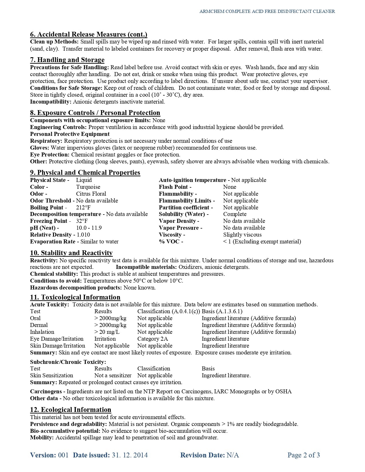 - pH: 11.5-12.5
