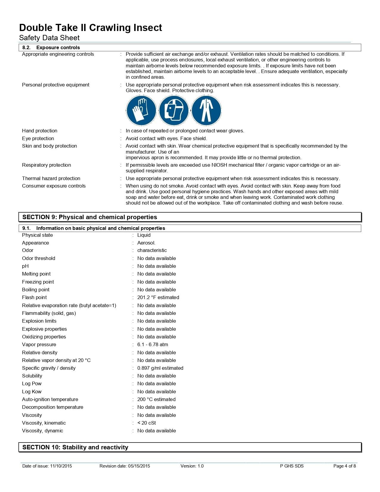 - Appearance and odor: Yellowish liquid, insecticide odor