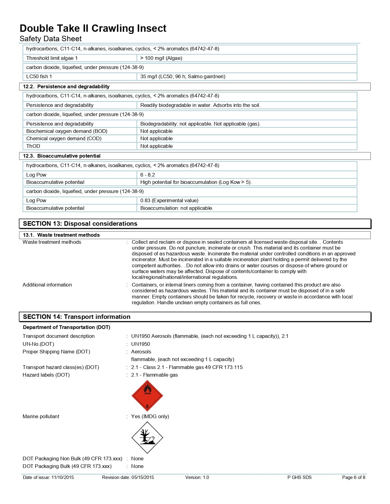 Description: DOUBLE TAKE II Flying & Crawling Insecticide is a fast-acting solution that provides up to six weeks of control over flying and crawling insects. This product is designed for ease of use and features a dual spray valve for versatile application. It emits a pleasant vanilla scent, ensuring no harsh odors during use. The jet stream application allows for great reach and precision.