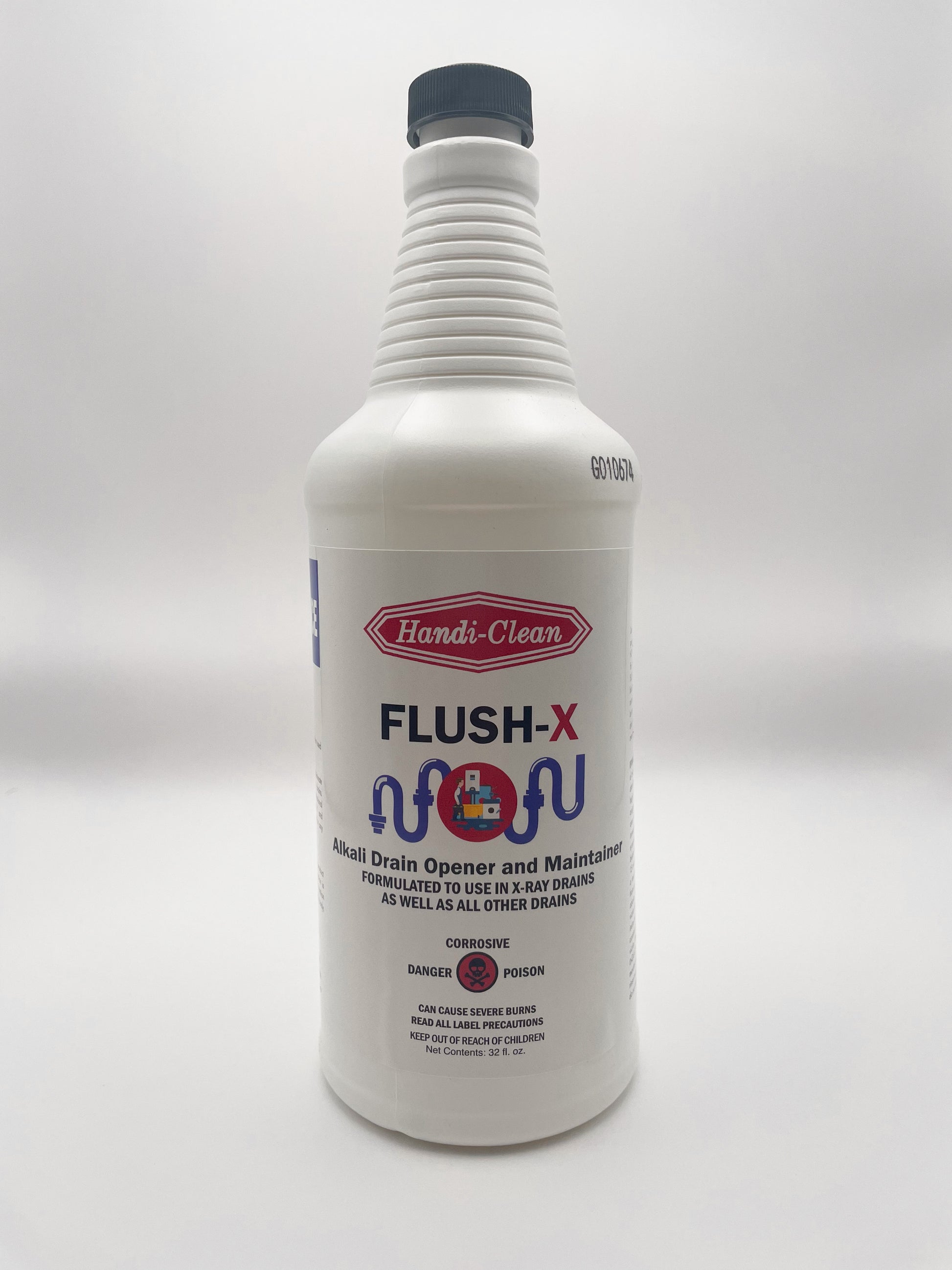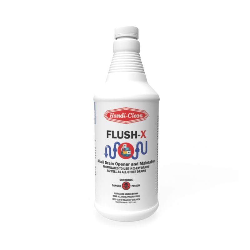 Description: FLUSH-X is a specially formulated solution designed to eliminate clogs caused by a variety of substances, including X-ray processing fluids. Its heavy composition penetrates deep into blockages, effectively clearing drains and preventing future clogs.
