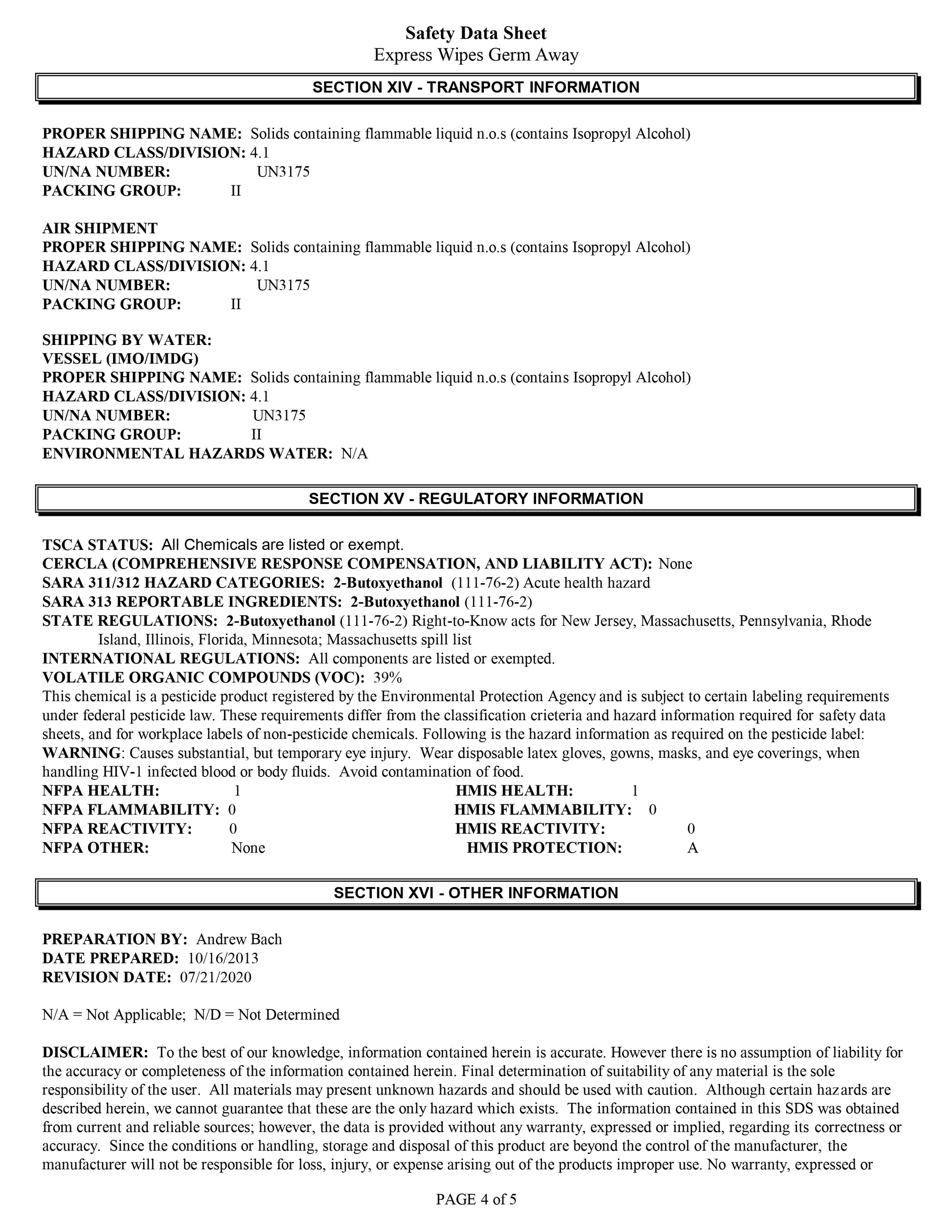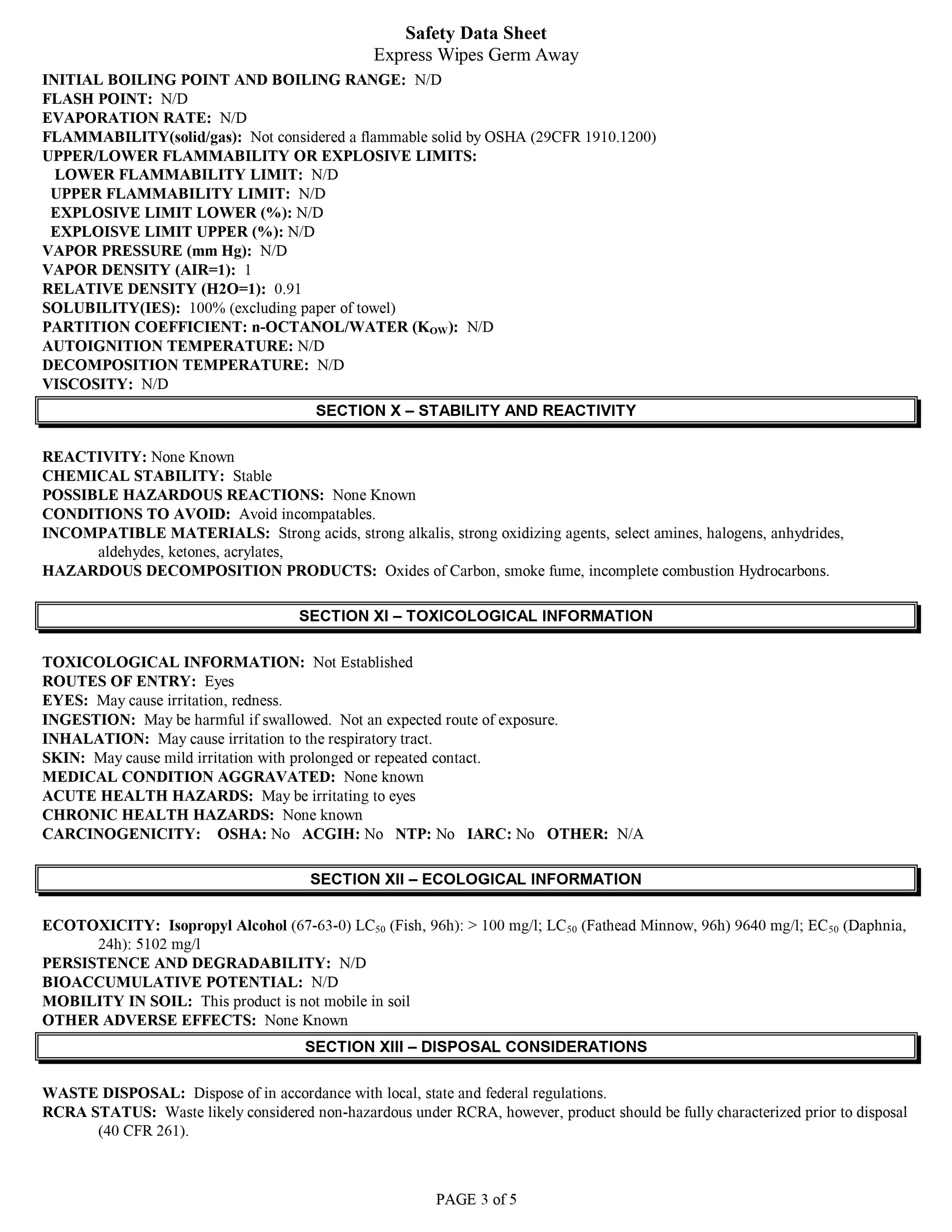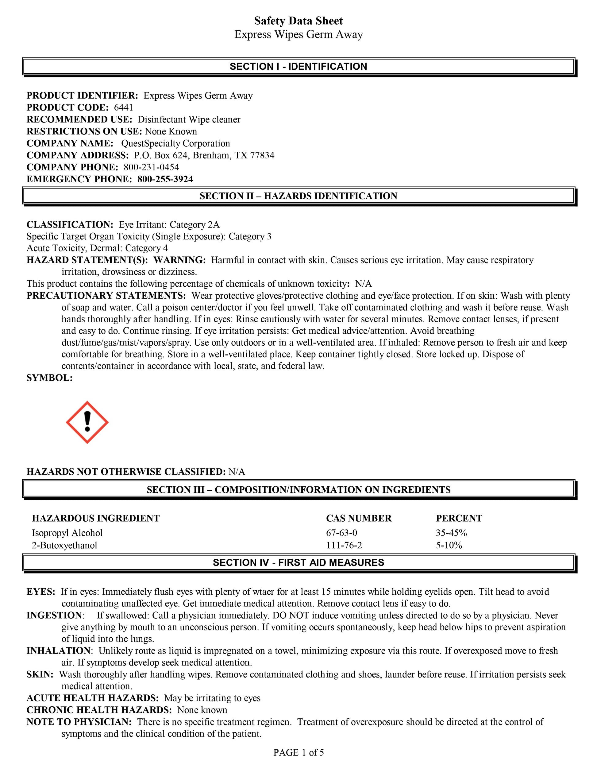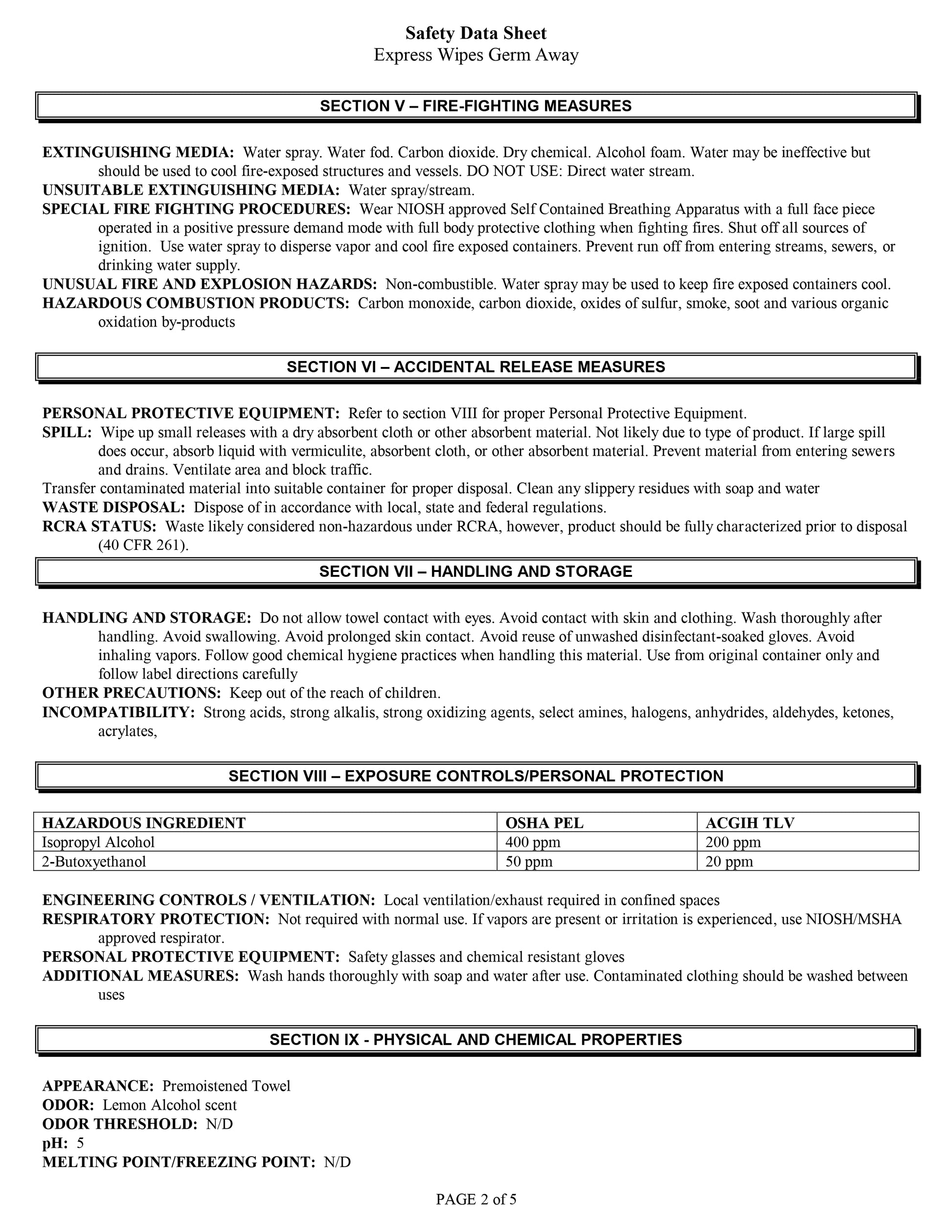 EXPRESS WIPES GERM AWAY wipes are pre-moistened, disposable cloths designed to disinfect and deodorize hard, non-porous surfaces. They are effective against a wide range of pathogens, including: