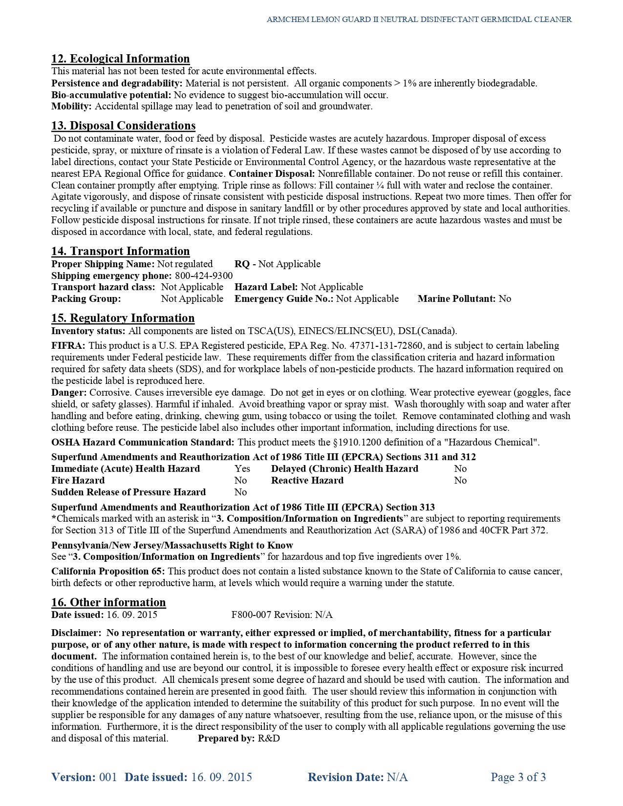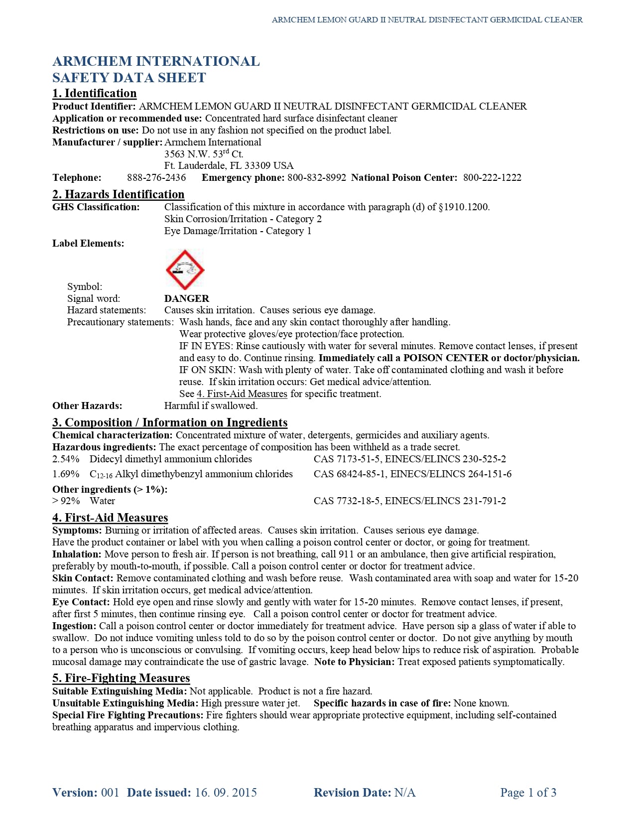Lemon Guard II: Neutral Disinfectant & Germicidal Cleaner