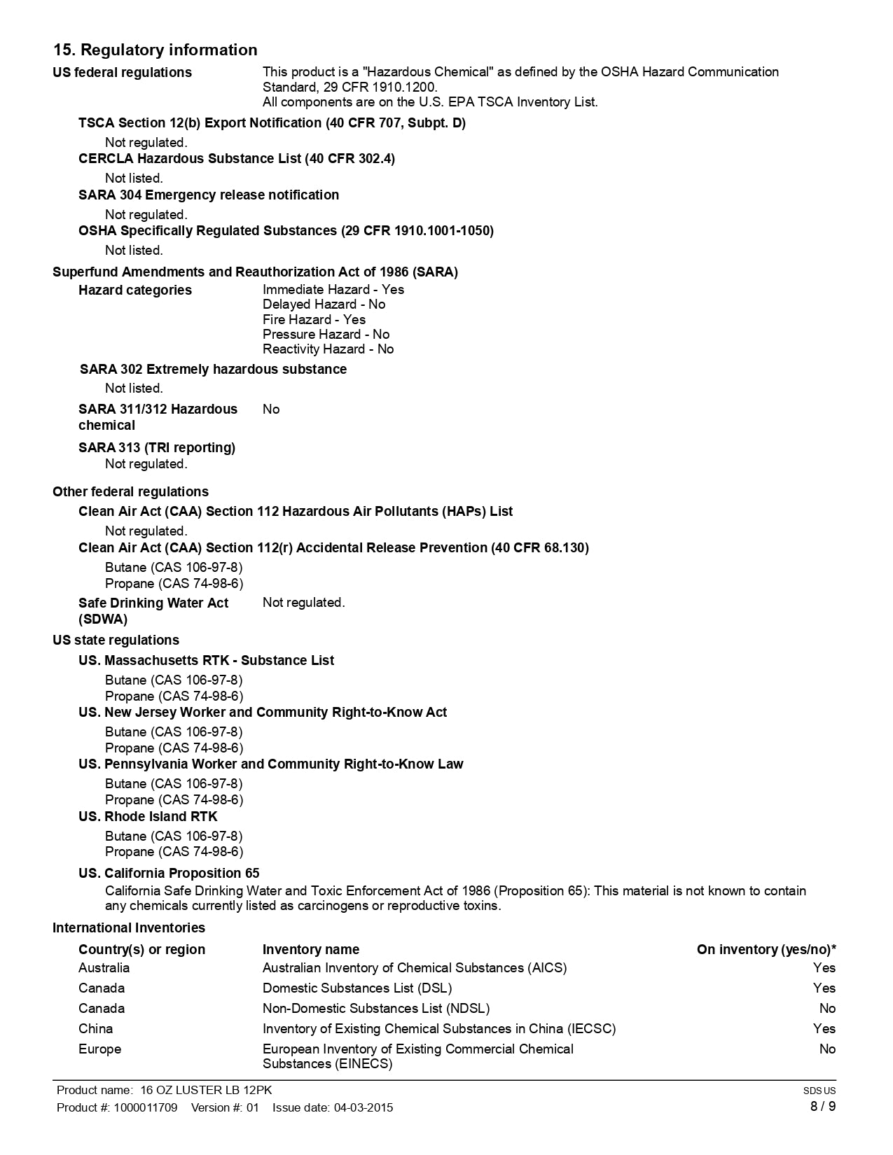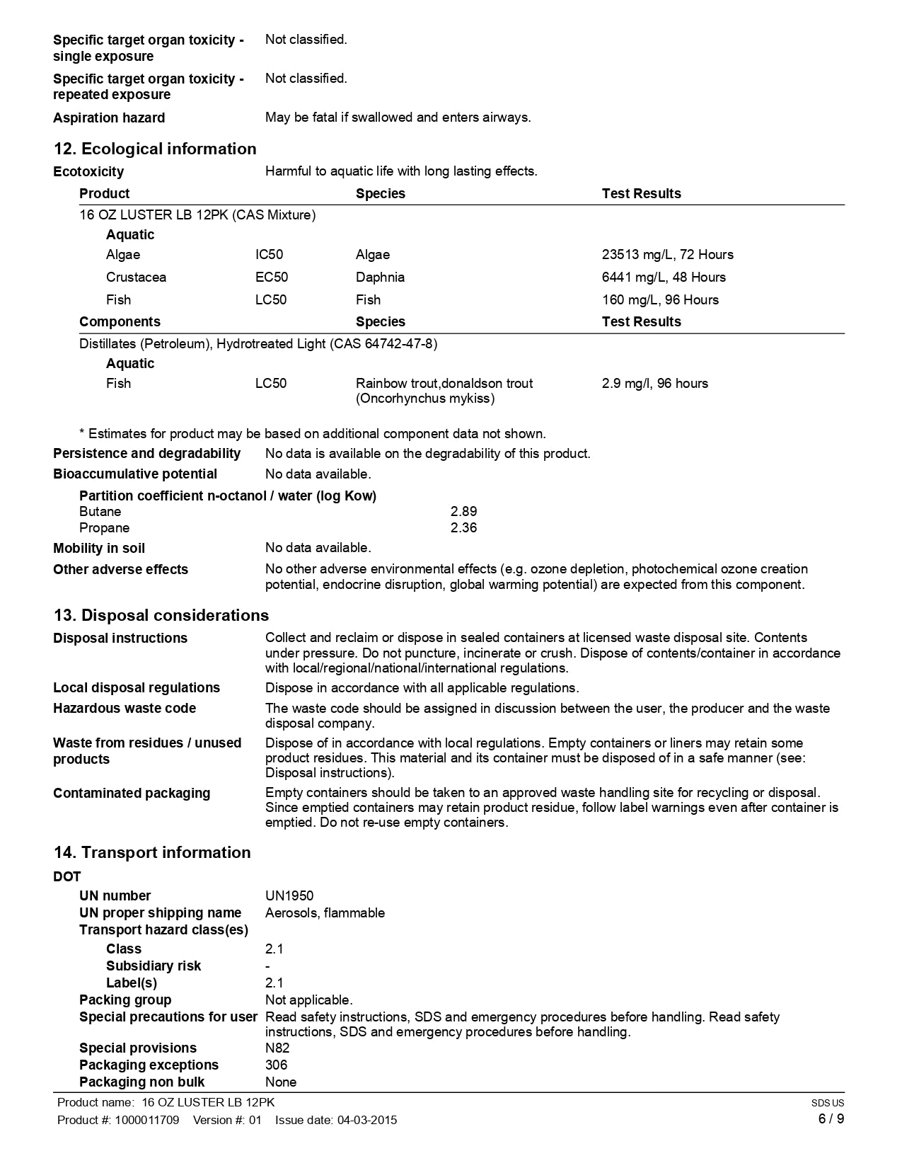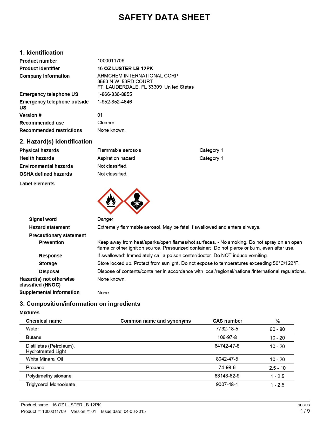 - Packaging: Aerosol Can