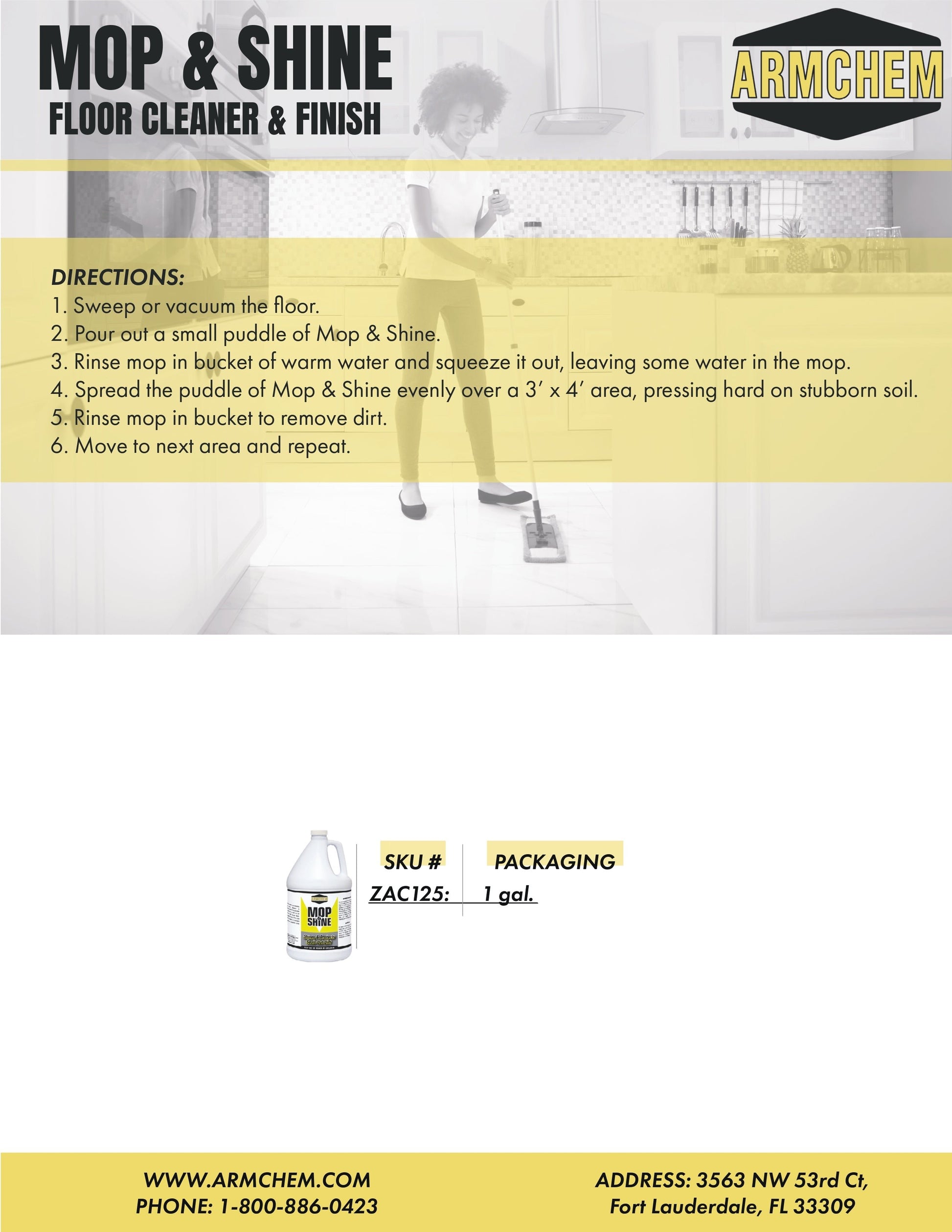 Mop & Shine makes everyday cleaning a breeze! Our exclusive polymer formula not only shines and protects floors but also seals out dirt and grime. Preserve the beauty of your floors with an unbeatable, shiny finish.