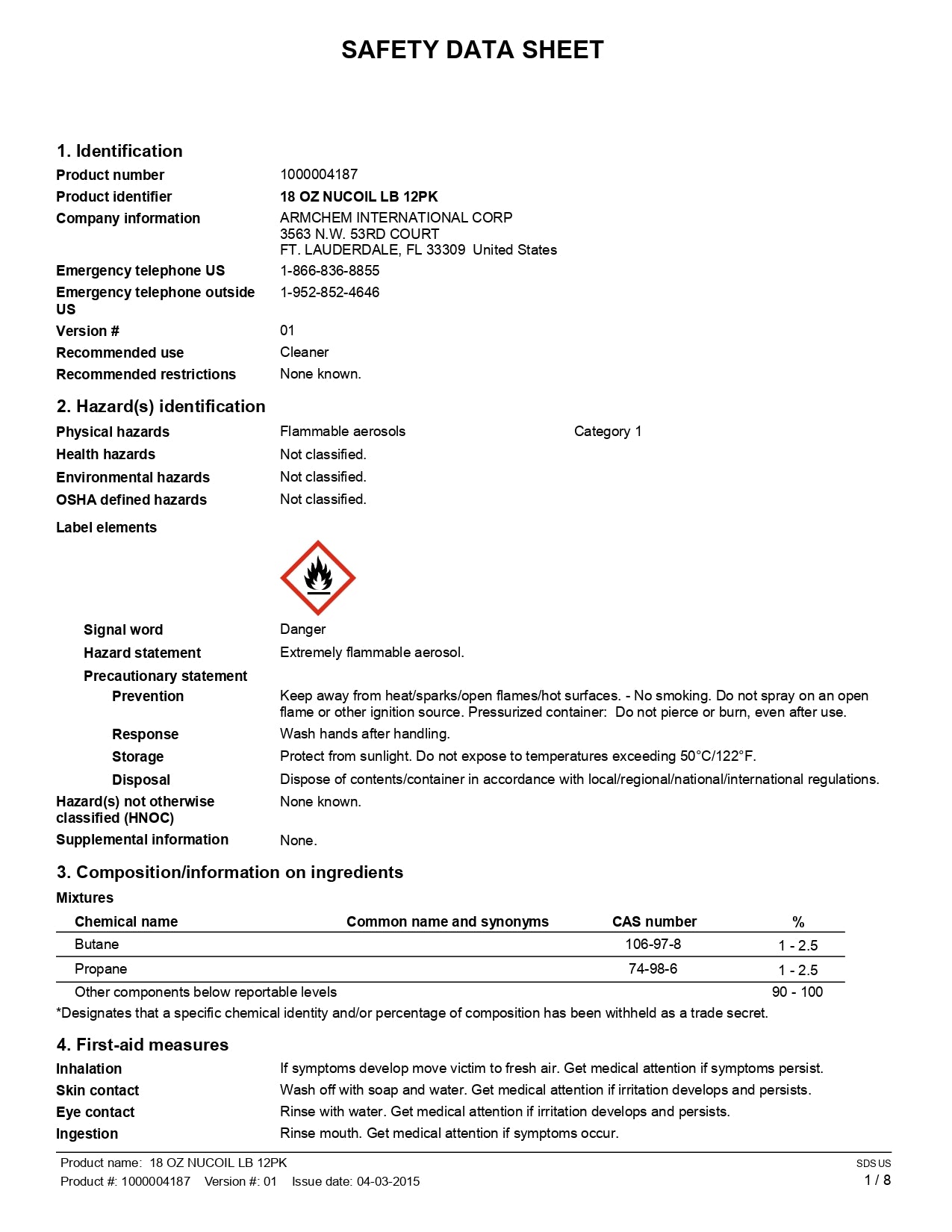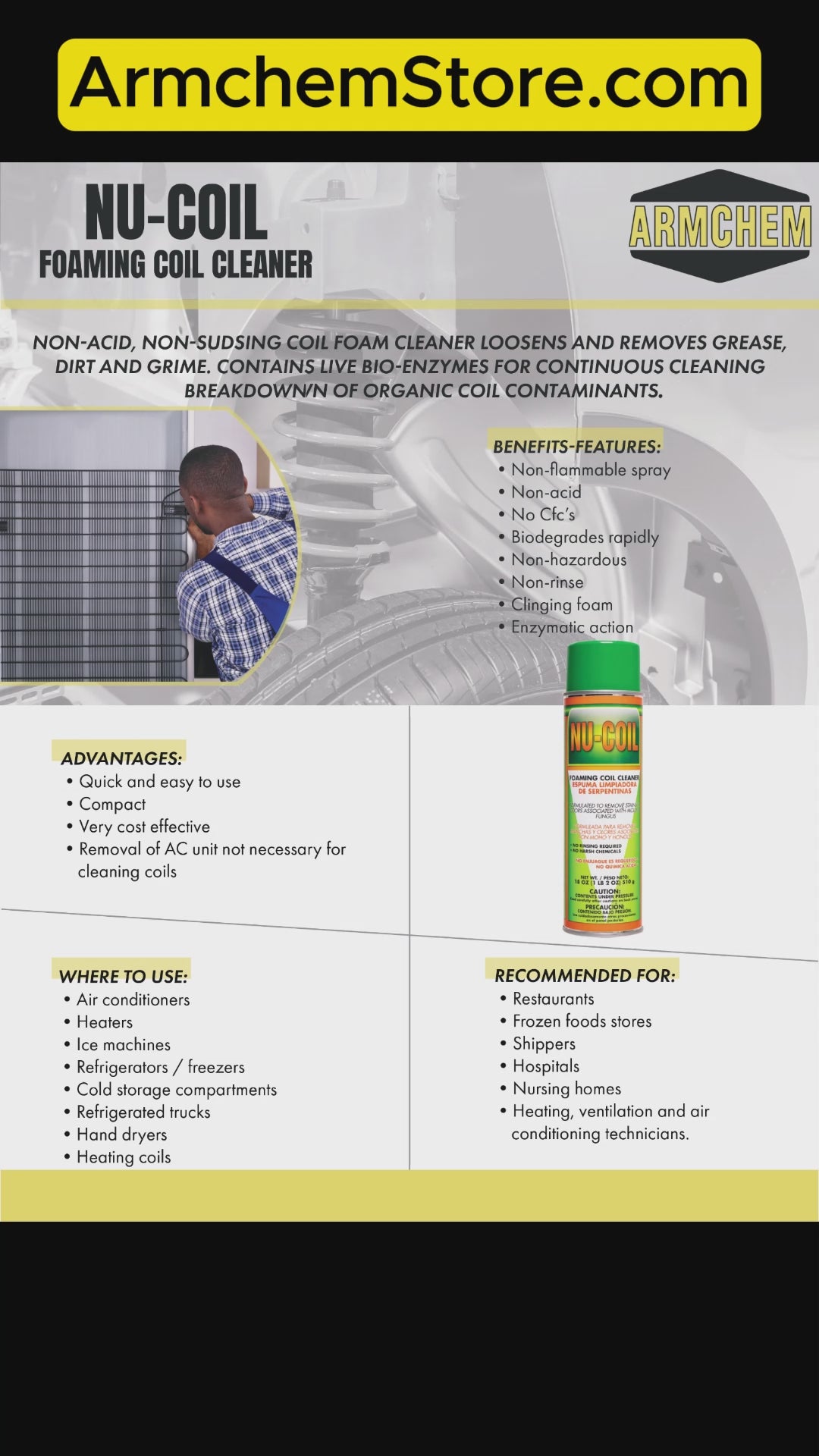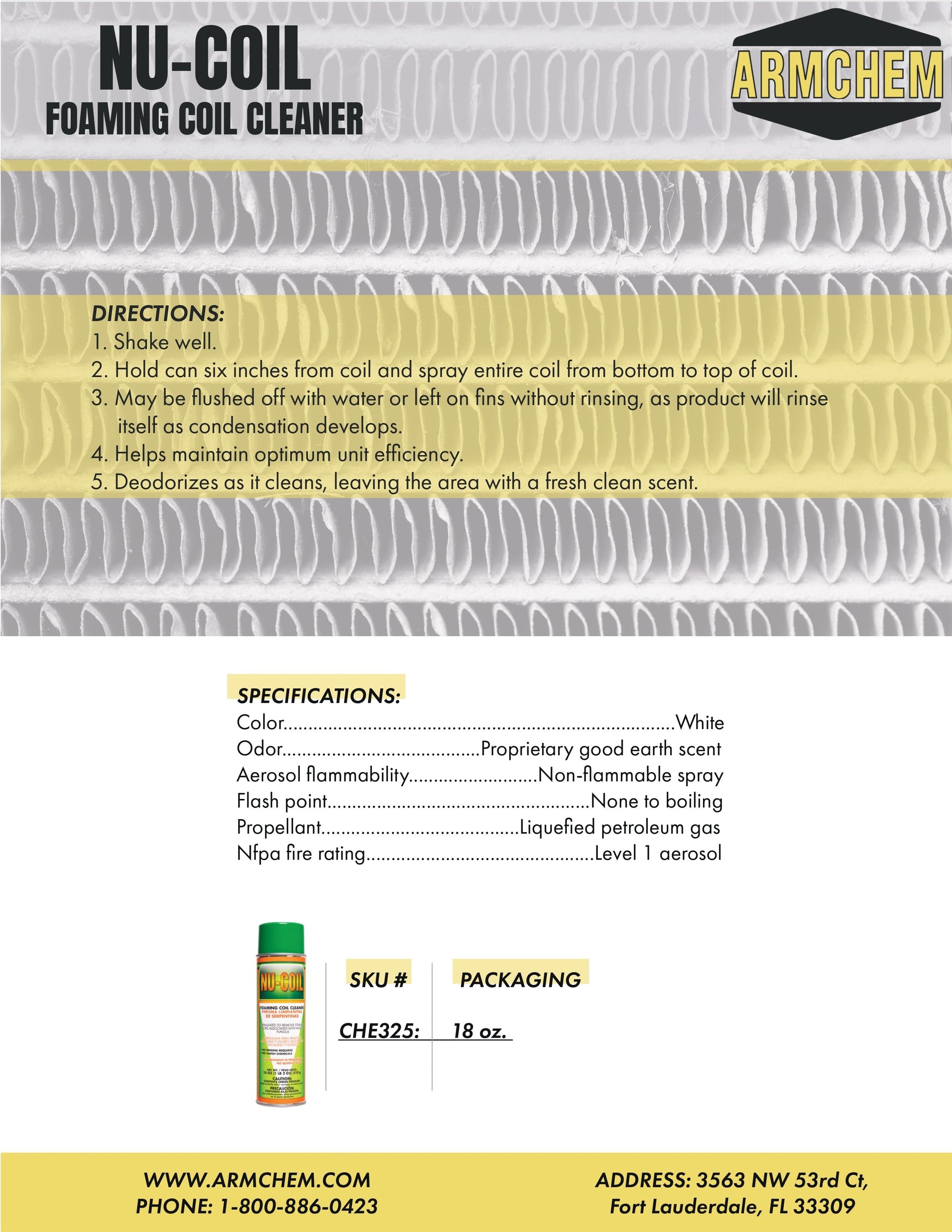Vendor:Armchem InternationalNU-COIL Foaming Coil Cleaner: 19 oz Aerosol Can All-Purpose Coil Cleaner
