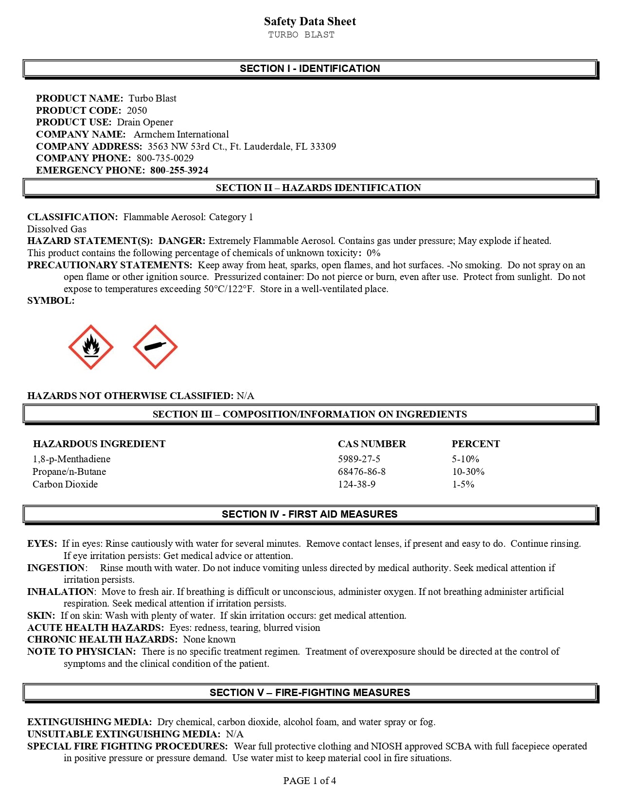 - Extremely flammable aerosol. Contains gas under pressure; may explode if heated.