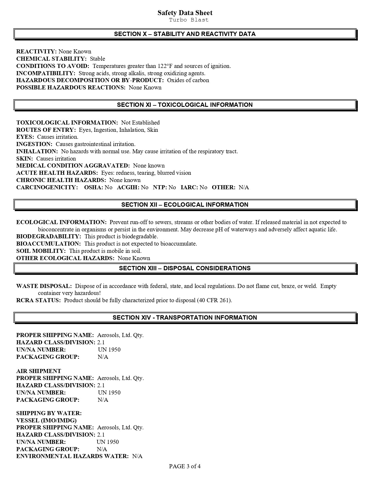 - Pressurized container: Do not pierce or burn, even after use.