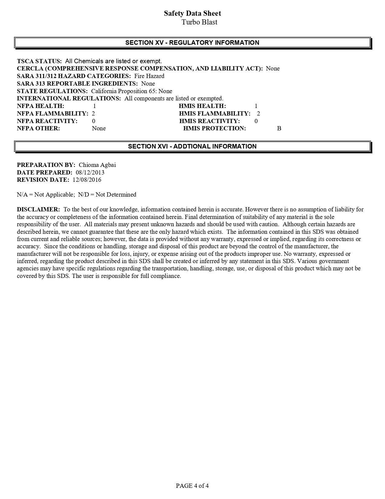 - Toxicity: None